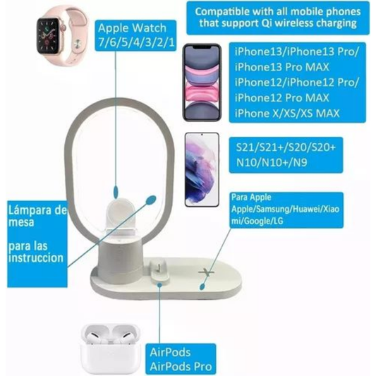 AHORRA $55.100Base de Carga Inalambrica Lampara Led 4 en 1 Puerto Tipo C