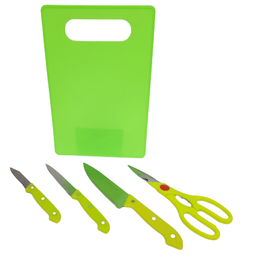 AHORRA $19.500Juego De Cuchillos X5 Piezas Tijeras Tabla Picar Cocina