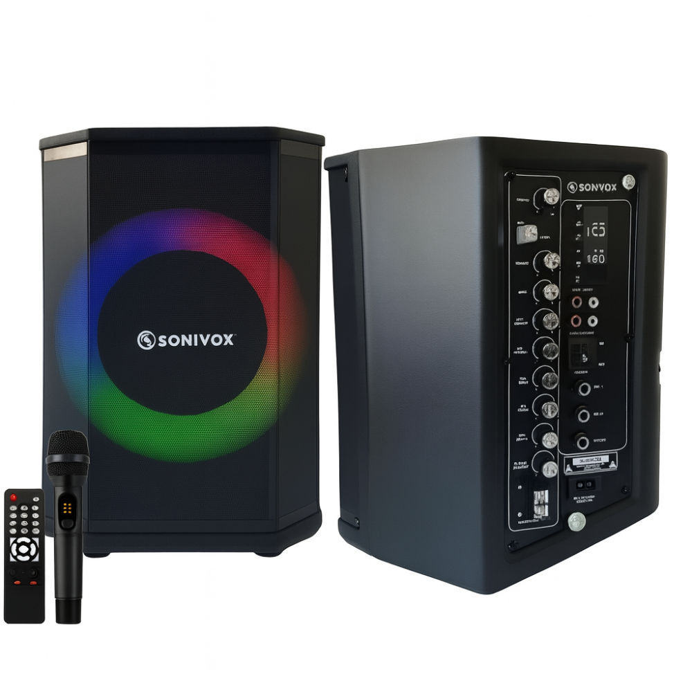 Cabina Sonivox 8" 8000W Bluetooth Luces LED Con Micrófono Altavoz Para Karaoke Parlante Inalambrico Karaoke DJ Fiestas Eventos Graves Potentes