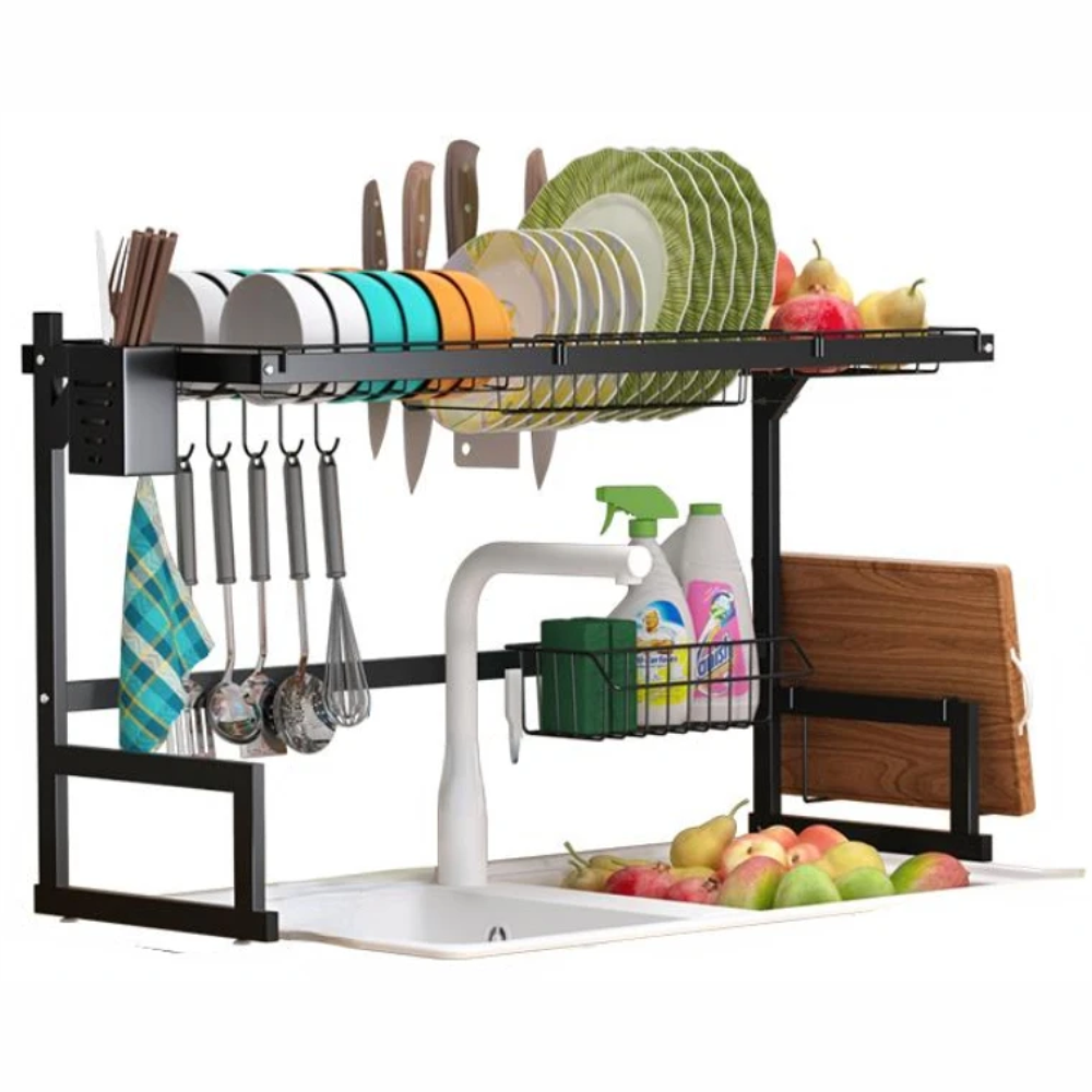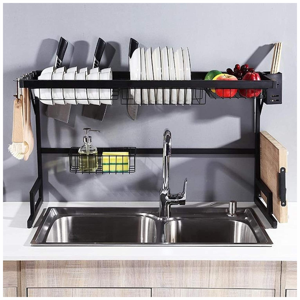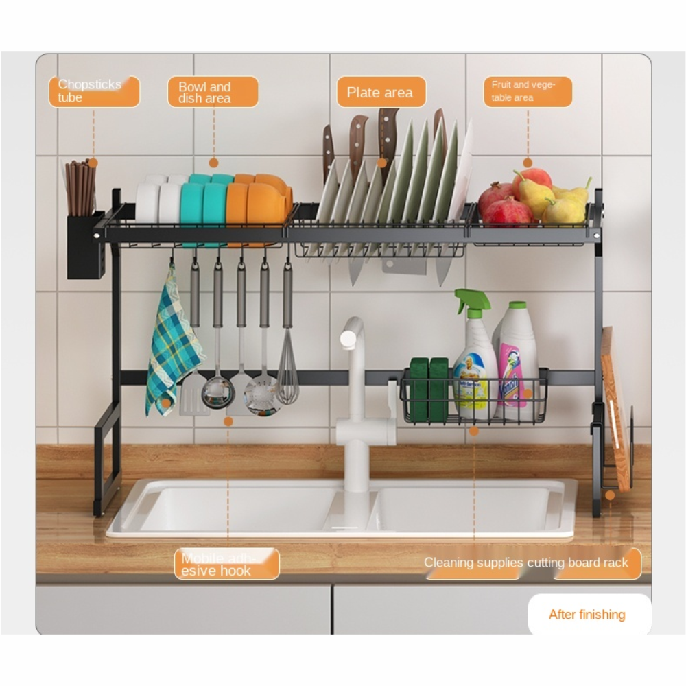 Se ajusta al 99% del fregadero: Diseño de producto exclusivo y una amplia gama de longitudes ajustables, adecuado para el 99% de los fregaderos individuales y dobles. Dimensiones del estante para platos: