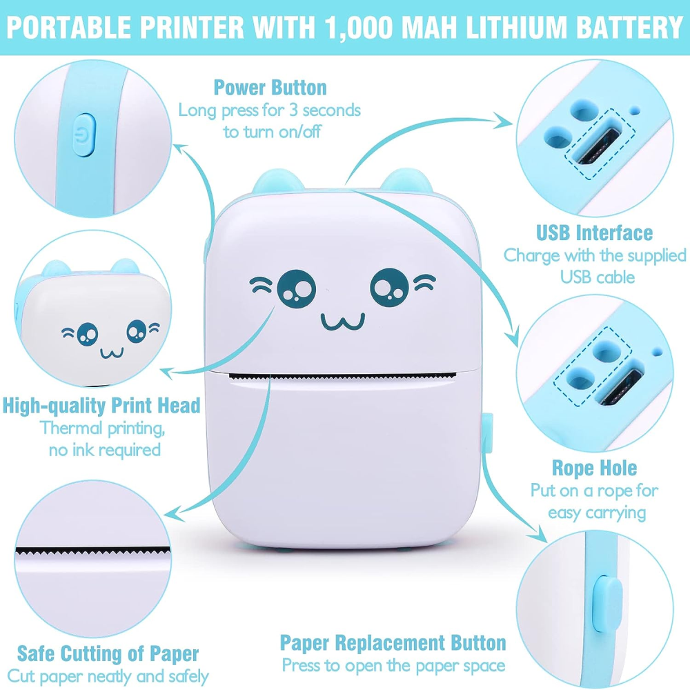 Mini impresora portátil térmica sin tinta Bluetooth para teléfono móvil impresión de fotos y textos