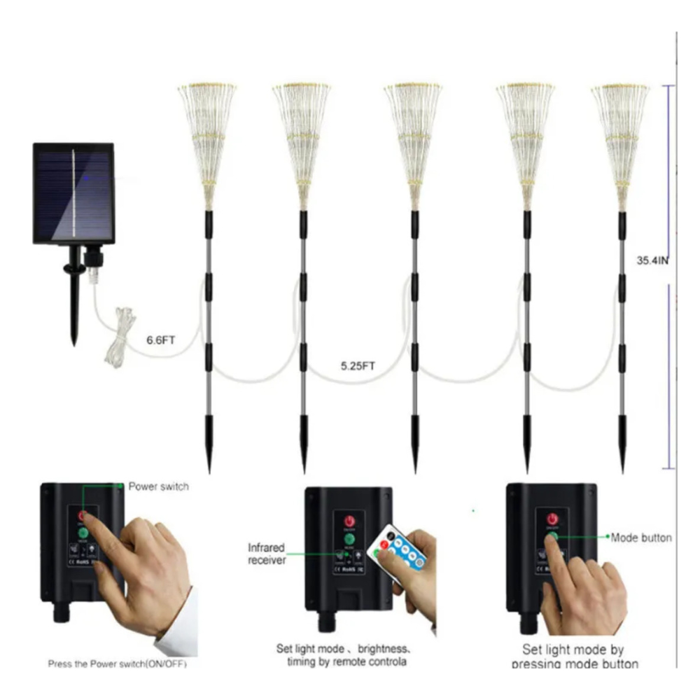 Luces Solares Navideñas Fuegos Artificiales Arbol Navidad