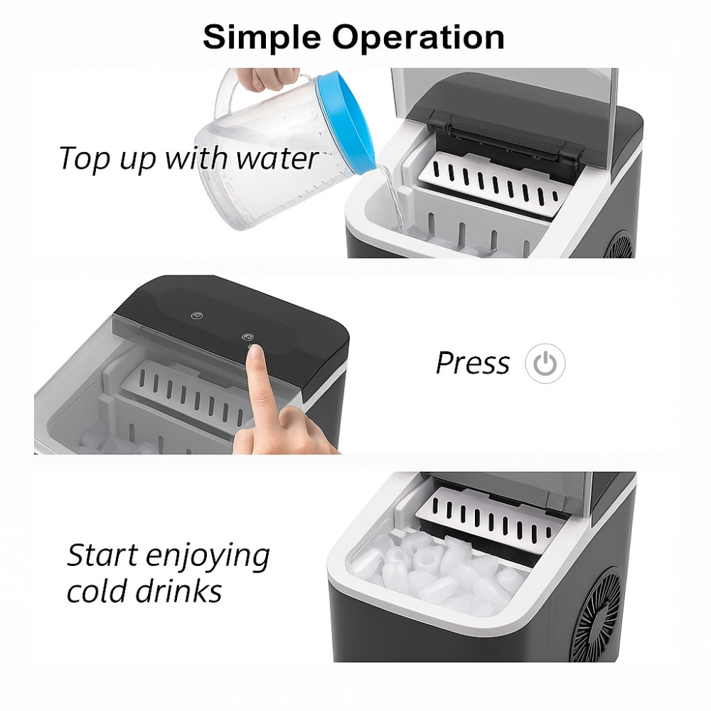 Produce hasta 9 cubos de hielo por ciclo, sin necesidad de refrigerador ni instalaciones complejas.