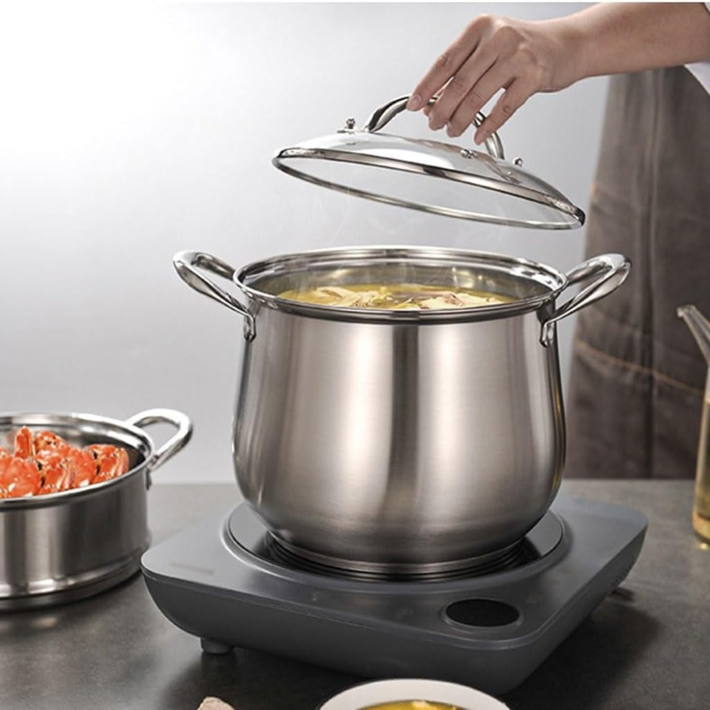 Esta robusta olla de acero inoxidable 304 es la elección perfecta para preparar grandes cantidades de alimentos en casa o en entornos profesionales. Su capacidad de 21 litros la hace ideal para cocinar para familias numerosas o para eventos especiales.