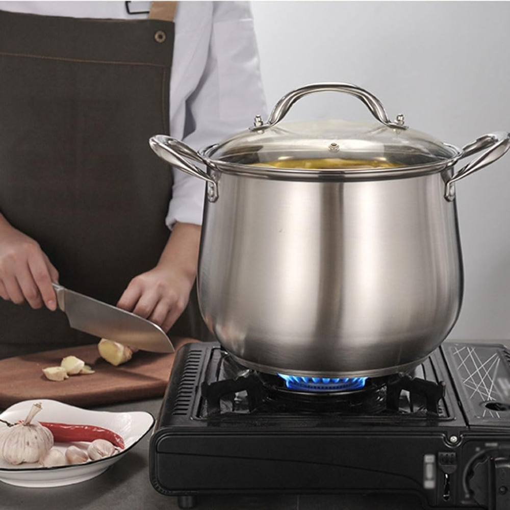 Esta robusta olla de acero inoxidable 304 es la elección perfecta para preparar grandes cantidades de alimentos en casa o en entornos profesionales. Su capacidad de 21 litros la hace ideal para cocinar para familias numerosas o para eventos especiales.