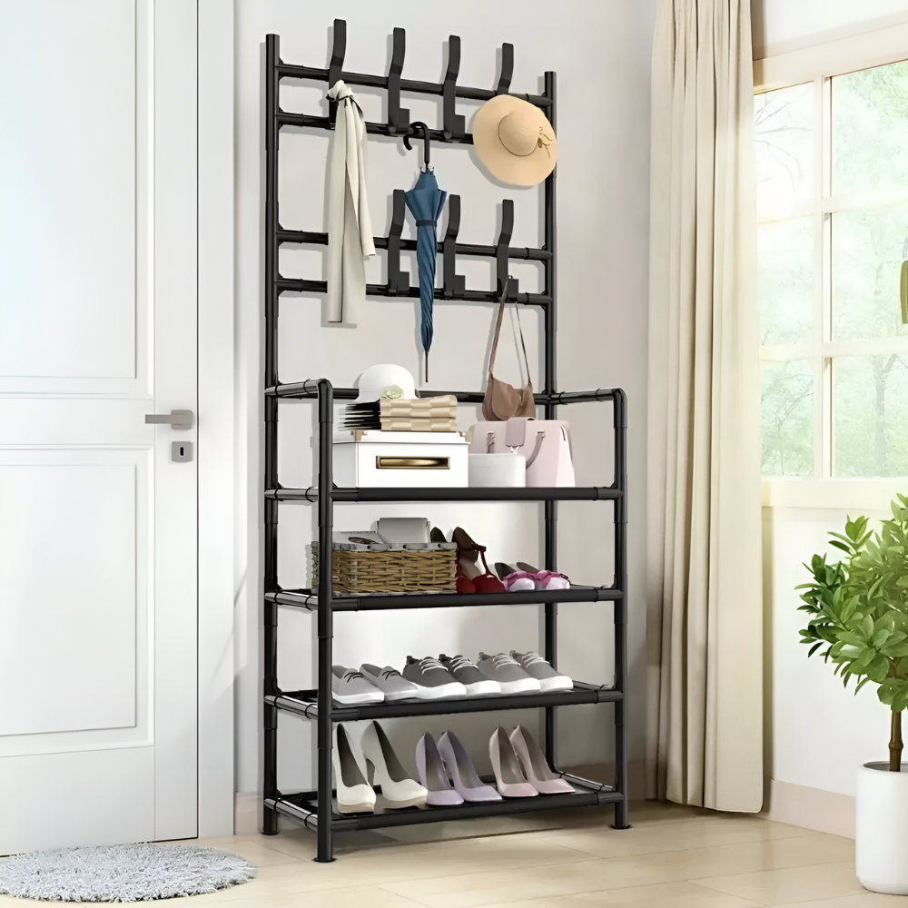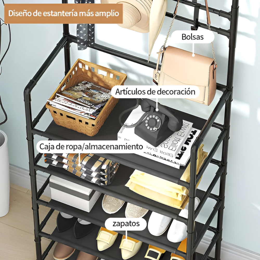 Diseño multifuncional 3 en 1: perchero + zapatero + organizador