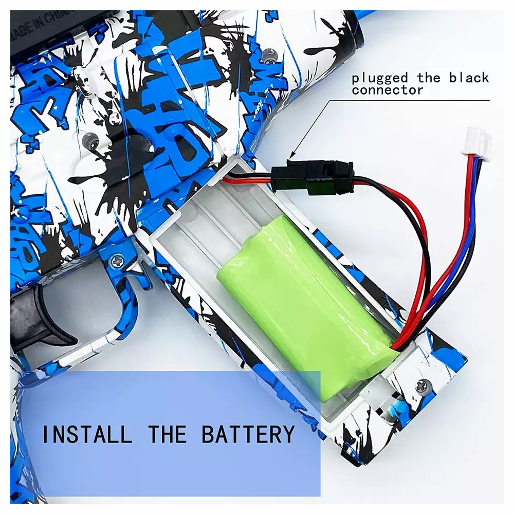 Batería recargable: El lanzador de balas de gel tiene una batería de 7.4 V, es necesario cargar durante 2 horas para que se puedan disparar alrededor de 1000 a 1500 rondas.